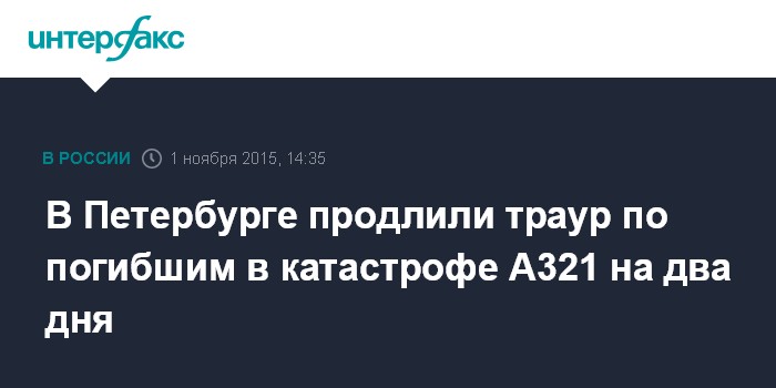 Накануне президент РФ Владимир Путин объявил траур в России 1 ноября в связи с авиакатастрофой.