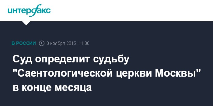 Москва. 3 ноября. INTERFAX.RU - Мосгорсуд перенес на 23 ноября рассмотрение иска столичного управления Минюста РФ о ликвидации религиозного объединения "Саентологическая церковь Москвы".