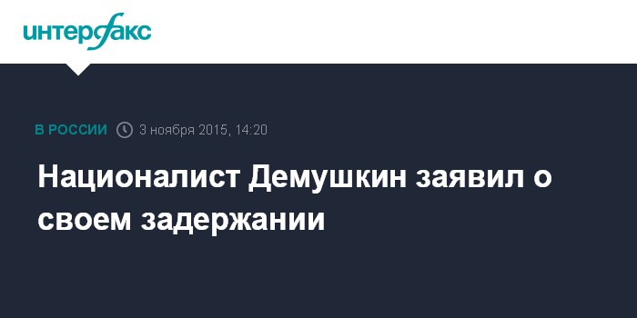 Москва. 3 ноября. INTERFAX.RU - Националист Дмитрий Демушкин сообщил о своем задержании сотрудниками силовых структур накануне проведения в Москве "Русского марша".