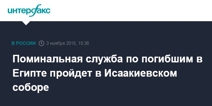 Поминальная служба по погибшим в Египте пройдет в Исаакиевском соборе