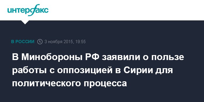 В Минобороны РФ заявили о пользе работы с оппозицией в Сирии для политического процесса