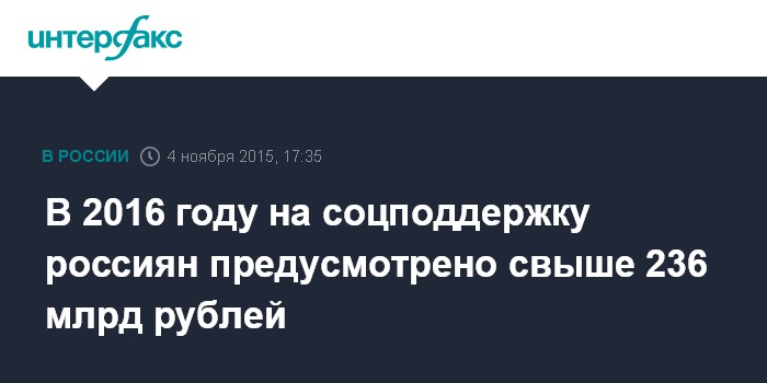 В 2016 году на соцподдержку россиян предусмотрено свыше 236 млрд рублей