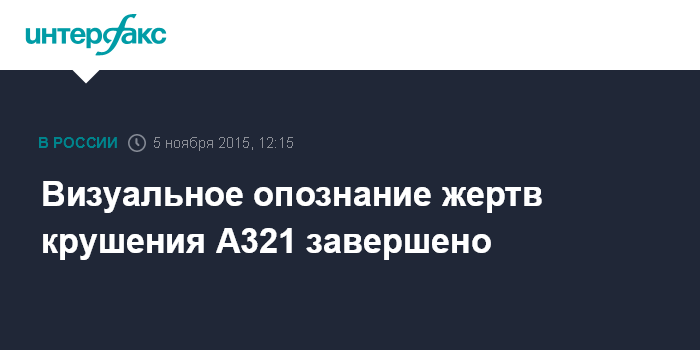 Москва. 5 ноября. INTERFAX.RU - Визуальная идентификация тел жертв крушения российского самолета в Египте завершилась, сообщил журналистам в четверг глава комитета по законности и правопорядку правительства Петербурга Леонид Богданов.