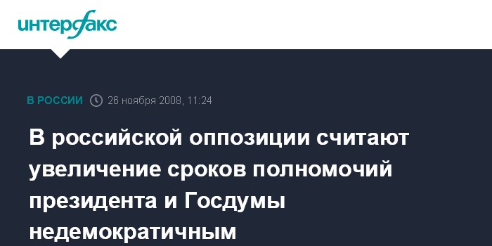 Москва. 26 ноября. INTERFAX.RU - Российская оппозиция считает недемократическими поправки в Конституцию, которые увеличивают срок президентских и депутатских полномочий.