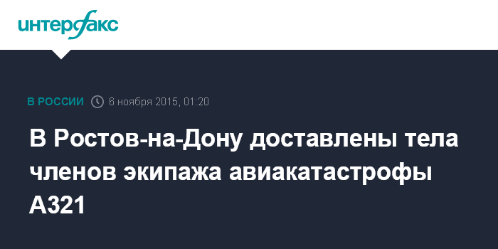 "Пассажирский самолет Пулково-Краснодар на котором доставляются тела двоих погибших членов экипажа А321 разбившегося на Синае, из-за ухудшения метеоусловий Краснодара - сильный туман, командир воздушного судна принял решение сесть в Ростове-на-Дону. Посадка была произведена в 0:46 мск", - сказал собеседник агентства.