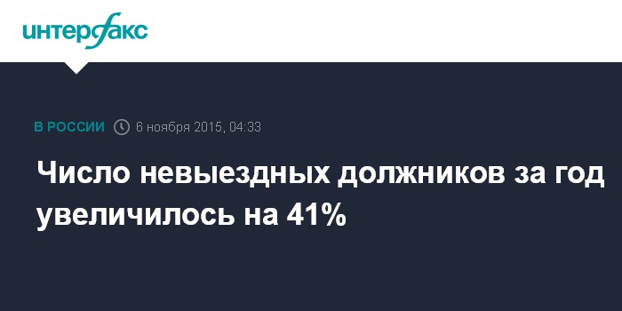 Москва. 6 ноября. INTERFAX.RU - На новогодние праздники из страны не смогут выехать из-за просроченных платежей по кредитам, ЖКХ, налогам, алиментам 1,7 млн человек, что на 41% больше, чем годом ранее, пишет газета "Известия".