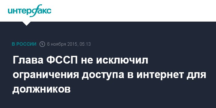 Москва. 6 ноября. INTERFAX.RU - Законодательная инициатива ограничить доступ в Интернет имеющим задолженности россиянам возможна, но должна быть скрупулезно проработана, сообщил директор Федеральной службы судебных приставов (ФССП) Артур Парфенчиков.