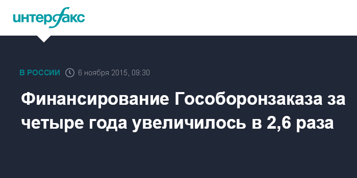 Финансирование Гособоронзаказа за четыре года увеличилось в 2,6 раза