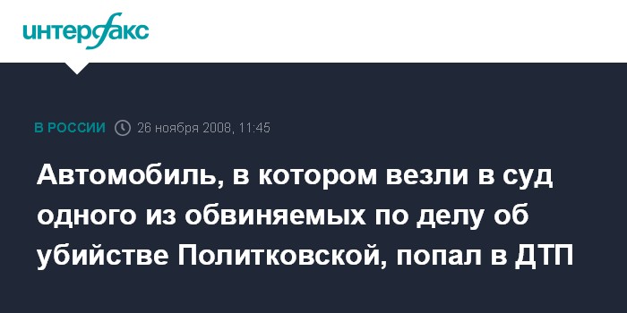 Москва. 26 ноября. INTERFAX.RU - Автомобиль конвоя, в котором везли в суд одного из обвиняемых по делу об убийстве журналистки Анны Политковской, в среду утром попал в аварию.
