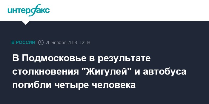 Москва. 26 ноября. INTERFAX.RU - В Подмосковье в результате столкновения легкового автомобиля с рейсовым автобусом погибли четыре человека, сообщил в среду "Интерфаксу" источник в правоохранительных органах.