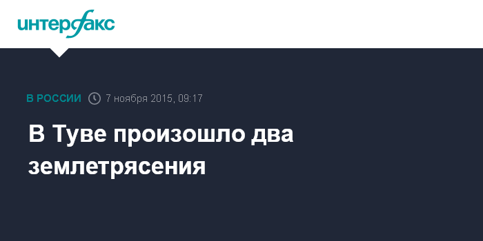 Москва. 7 ноября. INTERFAX.RU - Два подземных толчка зафиксировано в Туве в субботу, сообщает Геофизическая служба Сибирского отделения РАН.