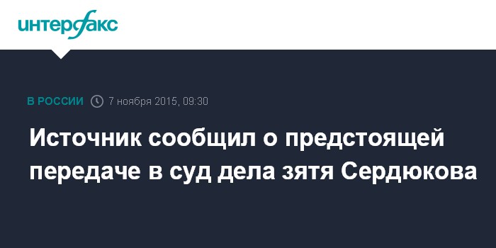 Источник сообщил о предстоящей передаче в суд дела зятя Сердюкова