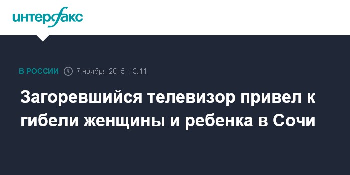 Загоревшийся телевизор привел к гибели женщины и ребенка в Сочи