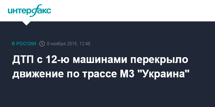 Москва. 8 ноября. INTERFAX.RU - Столкновение 12 автомобилей перекрыло движение в обе стороны в воскресенье утром по трассе М3 "Украина" в Мещовском районе Калужской области, сообщил отдел пропаганды регионального управления ГИБДД.