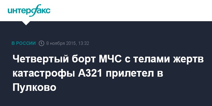 Москва. 8 ноября. INTERFAX.RU - Самолет МЧС доставил в Санкт-Петербург останки погибших при крушении самолета А321 на Синае, сообщили в пресс-службе министерства.