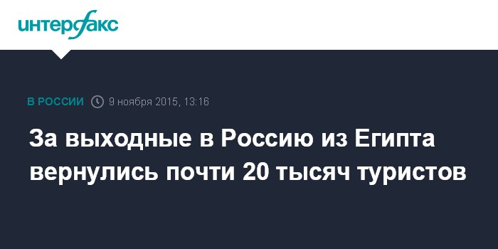 Москва. 9 ноября. INTERFAX.RU - За выходные дни из Египта в плановом порядке вернулись 19 тыс. российских туристов, сообщил журналистам в понедельник глава Ростуризма Олег Сафонов.