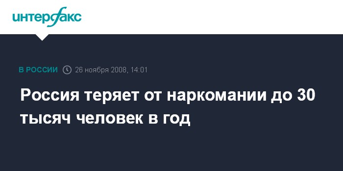 Москва. 26 ноября. INTERFAX.RU - В России около 2 млн наркоманов, ежегодно от наркотиков в стране умирает до 30 тыс. человек, сообщил директор Федеральной службы РФ по наркоконтролю Виктор Иванов.