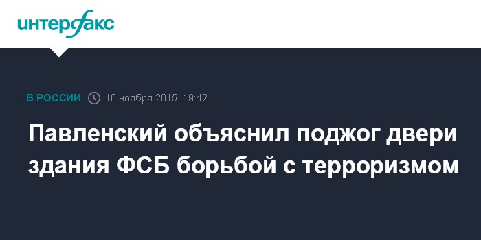 Москва. 10 ноября. INTERFAX.RU - Художник Петр Павленский, обвиняемый в вандализме в связи с поджогом двери здания ФСБ на Лубянке, заявил, что его акция - это способ борьбы с терроризмом.