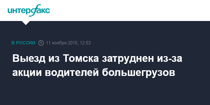 Москва. 11 ноября. INTERFAX.RU - Около 30 большегрузных автомобилей очень медленно двигаются по федеральной трассе на выезде из Томска, сообщили "Интерфаксу" в пресс-службе УМВД по региону в среду.