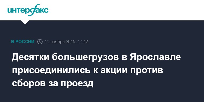 Москва. 11 ноября. INTERFAX.RU - Акция протеста водителей большегрузных автомобилей против введения оплаты за проезд по федеральным трассам прошла в Ярославле, сообщили в среду "Интерфаксу" участники акции.