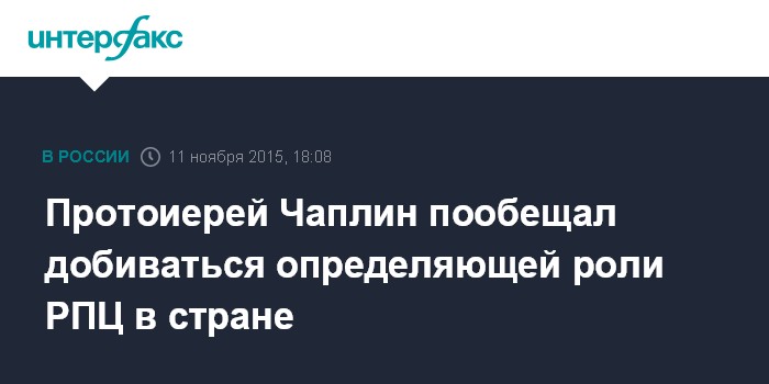 Протоиерей Чаплин пообещал добиваться определяющей роли РПЦ в стране