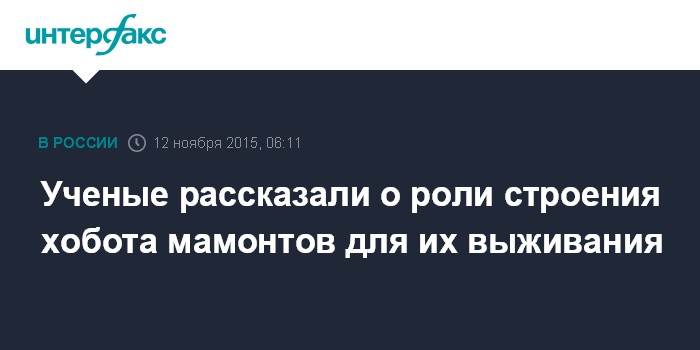 Москва. 12 ноября. INTERFAX.RU - Якутские ученые считают, что морфологическая особенность строения хобота мамонтов помогла им свое время выживать в холодных климатических условиях.