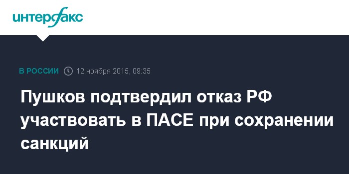 Как подчеркнул парламентарий, Россия не ставит вопрос о полном прекращении деятельности в ПАСЕ. "Но мы подчеркиваем - пока действуют санкции, мы в работе этой организации участвовать не будем", - заявил Пушков.