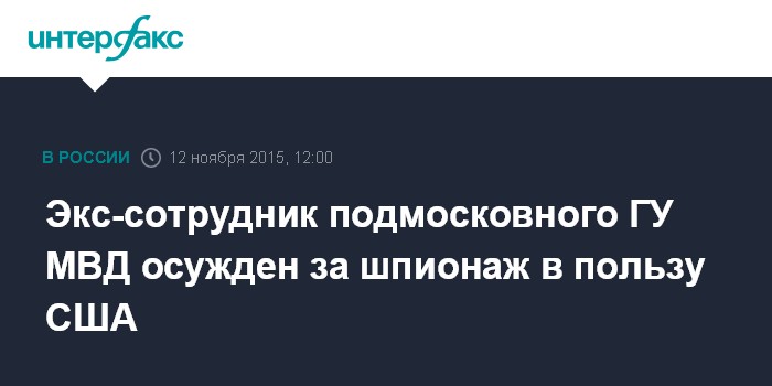 Экс-сотрудник подмосковного ГУ МВД осужден за шпионаж в пользу США