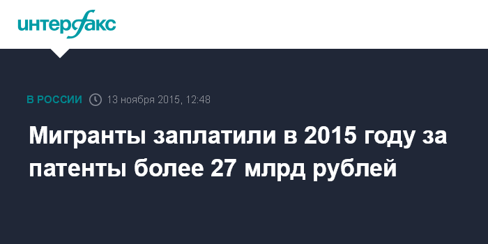 Мигранты заплатили в 2015 году за патенты более 27 млрд рублей