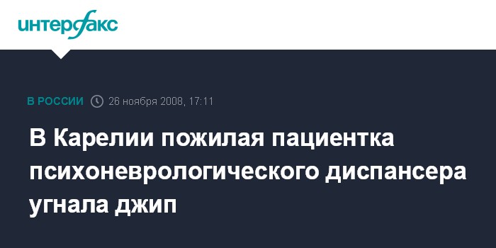 В Карелии пожилая пациентка психоневрологического диспансера угнала джип