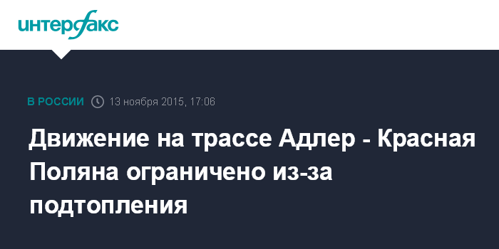 Движение на трассе Адлер - Красная Поляна ограничено из-за подтопления