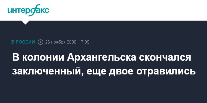 Москва. 26 ноября. INTERFAX.RU - В исправительной колонии N7 общего режима Архангельской области во вторник обнаружено тело заключенного без признаков насильственной смерти, сообщили "Интерфаксу" в пресс-службе УФСИH России по региону.