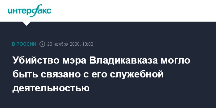Москва. 26 ноября. INTERFAX.RU - Служебная деятельность мэра Владикавказа Виталия Караева, застреленного в среду неизвестными, могла стать причиной этого преступления, считают в Следственном комитете при прокуратуре (СКП) РФ.