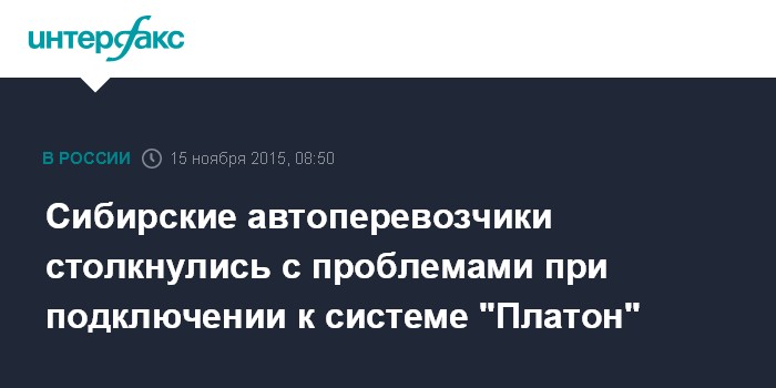 Москва. 15 ноября. INTERFAX.RU - Ряд автоперевозчиков столкнулся с проблемами при попытке подключения к системе "Платон", которая должна начать работу с 15 ноября, сообщил агентству "Интерфакс" президент Сибирской ассоциации автомобильных перевозчиков Вячеслав Трунаев в воскресенье.