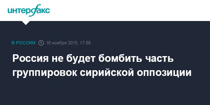 Россия не будет бомбить часть группировок сирийской оппозиции