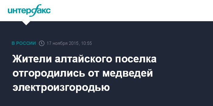 Москва. 17 ноября. INTERFAX.RU - Более 3,5 км электрической изгороди установили специалисты Алтайского заповедника в Республике Алтай, чтобы защитить жителей заповедного поселка Яйлю от нашествия бурых медведей, сообщает во вторник пресс-центр республиканского правительства.