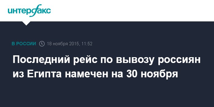 Последний рейс по вывозу россиян из Египта намечен на 30 ноября