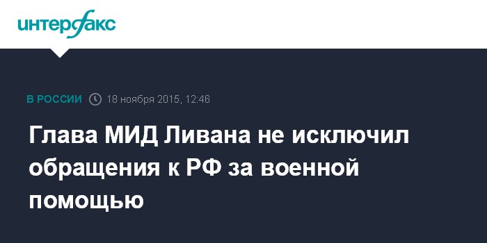 Москва. 18 ноября. INTERFAX.RU - Ливан может обратиться к России за военной помощью для борьбы с терроризмом, заявил глава ливанского МИД Джебран Басиль.