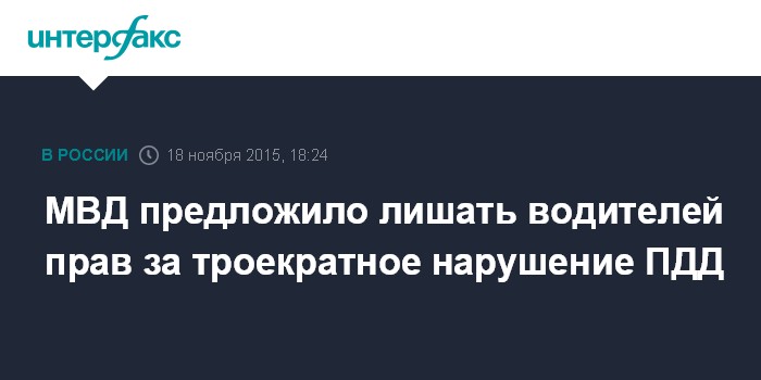 Москва. 18 ноября. INTERFAX.RU - МВД предложило на год лишать прав водителей, которые в течение года трижды попались на нарушениях Правил дорожного движения (ПДД).