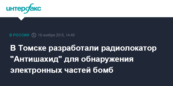 Москва. 19 ноября. INTERFAX.RU - Радиофизики Томского госуниверситета (ТГУ) разработали устройство под названием "Радиоглаз-Антишахид", способное дистанционно и скрытно обнаруживать спрятанные электронные предметы, являющиеся частями взрывных устройств, сообщает пресс-служба вуза в четверг.