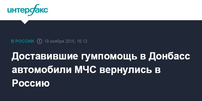 Москва. 19 ноября. INTERFAX.RU - МЧС России успешно завершило очередной этап оказания гуманитарной помощи жителям Донецкой и Луганской областей, сообщили в четверг "Интерфаксу" в пресс-службе ведомства.