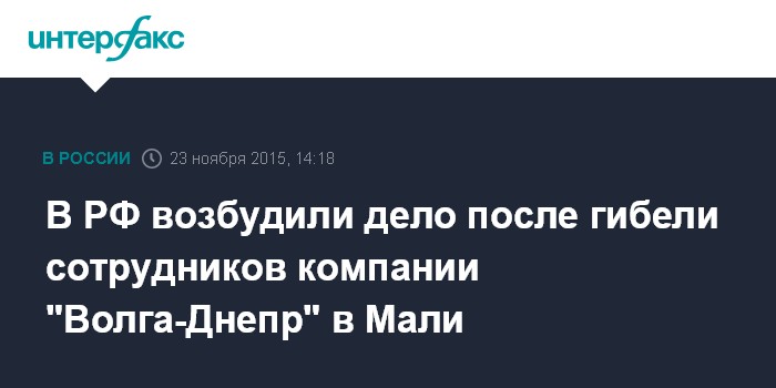 Москва. 23 ноября. INTERFAX.RU - Следственное управление СКР по Ульяновской области возбудило уголовное дело по факту убийства жителей региона, работавших в авиакомпании "Волга-Днепр", в столице Мали (ч.4 ст.206 УК РФ - захват заложников, пункты "а", "ж" ч.2 ст.105 УК РФ - убийство).