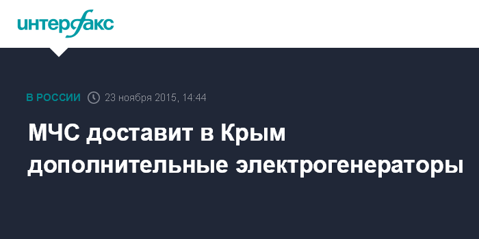 Москва. 23 ноября. INTERFAX.RU - МЧС России собирается перебросить автономные источники энергии в Крым и сформировать запасы топлива для них, сообщил глава ведомства Владимир Пучков.