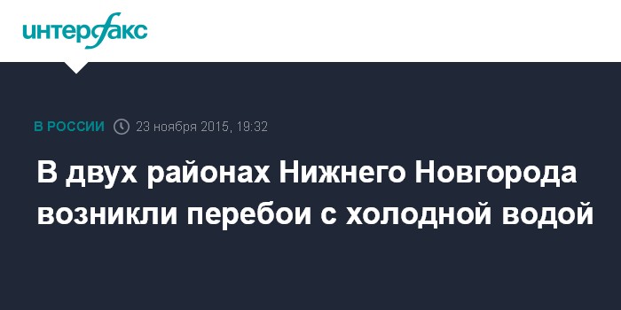 Москва. 23 ноября. INTERFAX.RU - Жители двух районов Нижнего Новгорода испытывают трудности с холодным водоснабжением из-за крупной коммунальной аварии, сообщили агентству "Интерфакс-Поволжье" в пресс-службе городской администрации.