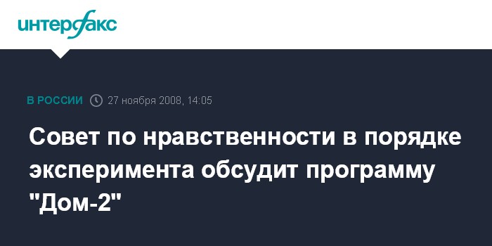 Москва. 27 ноября. INTERFAX.RU - Общественный совет по нравственности на телевидении на втором экспериментальном заседании 2 декабря обсудит программу "Дом-2".
