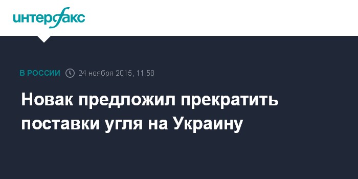 Москва. 24 ноября. INTERFAX.RU - Россия может приостановить поставки угля на Украину в ответ на прекращение поставок электроэнергии, сообщил министр энергетики РФ Александр Новак в эфире радиостанции "Вести FM".