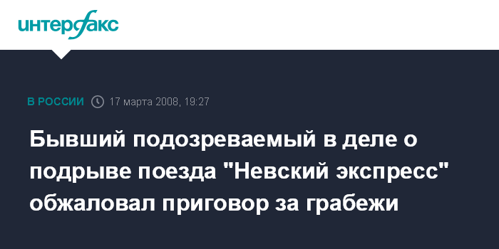 Бывший подозреваемый в деле о подрыве поезда "Hевский экспресс" обжаловал приговор за грабежи