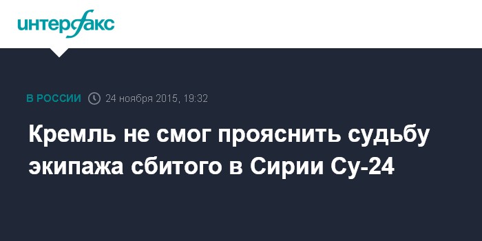 Во вторник российский Су-24, участвовавший в воздушной операции против террористов в Сирии, был сбит турецкими ВВС вблизи границы с Турцией. Как заявляло ранее Минобороны, "самолет находился на высоте 6 тыс. метров...По предварительным данным, пилотам удалось катапультироваться".