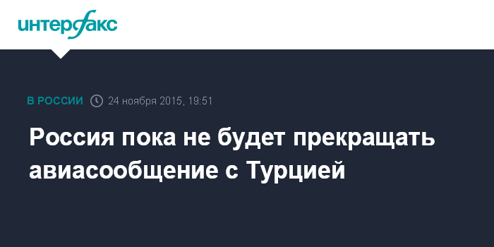 Россия пока не будет прекращать авиасообщение с Турцией