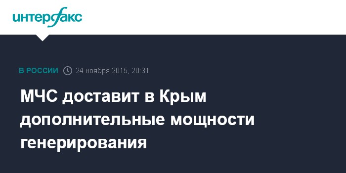 Москва. 24 ноября. INTERFAX.RU - В Крым выдвигаются дополнительные мощности генерирования, для контроля соблюдения графика отключений электроэнергии сформирована рабочая группа, сообщил глава МЧС России Владимир Пучков.